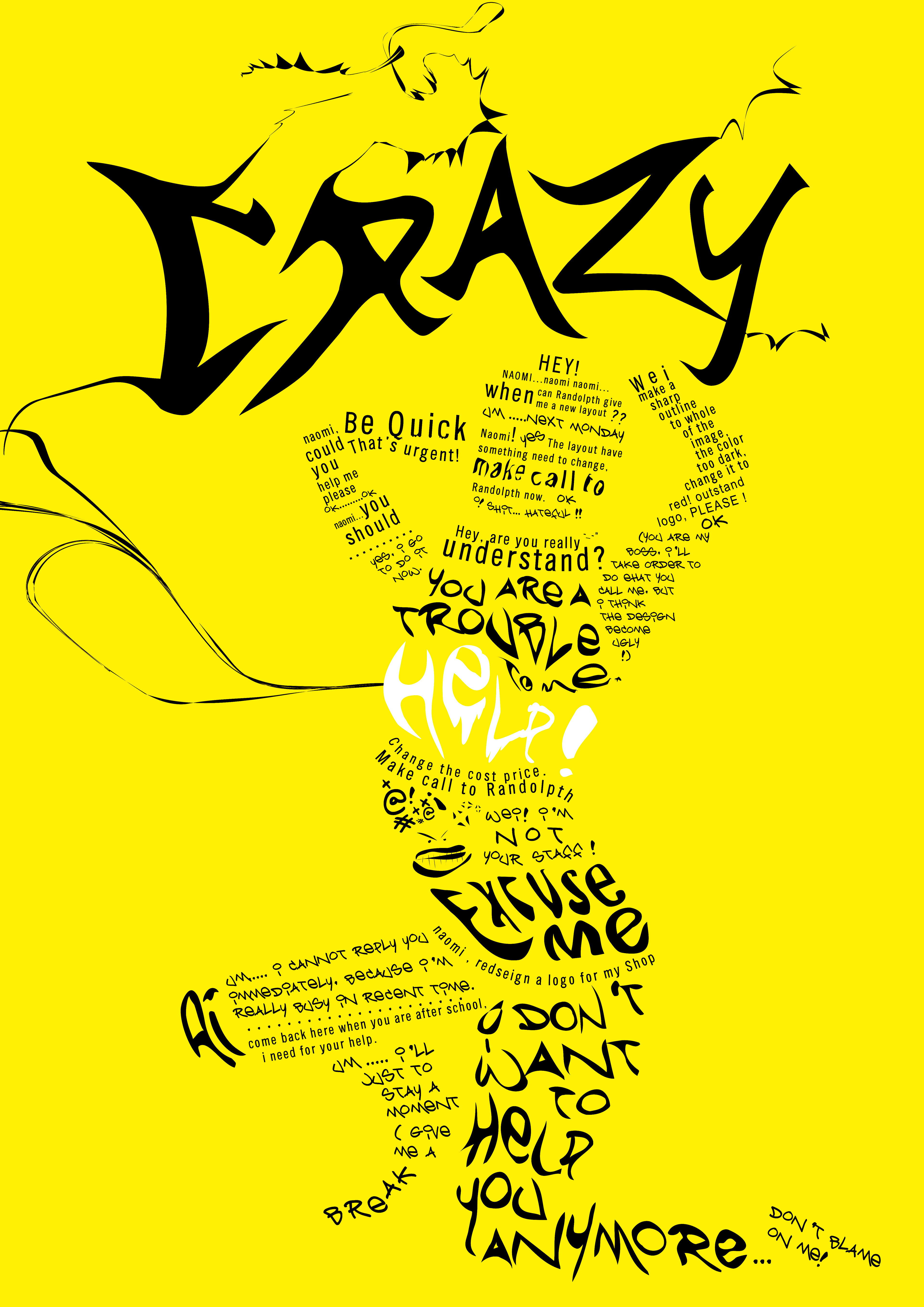 A fresh graduate was stressed out for her first job. The dialogues with the employer are presented in irregular and squeezed letterforms that showed the tension.